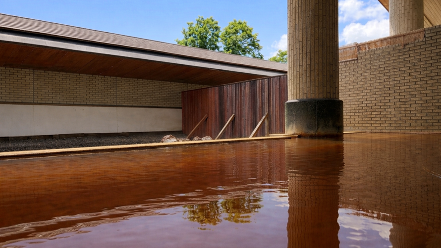 地下約1,000mから湧出する 赤湯 は鉄分や炭酸などを含み源泉の息吹を感じる