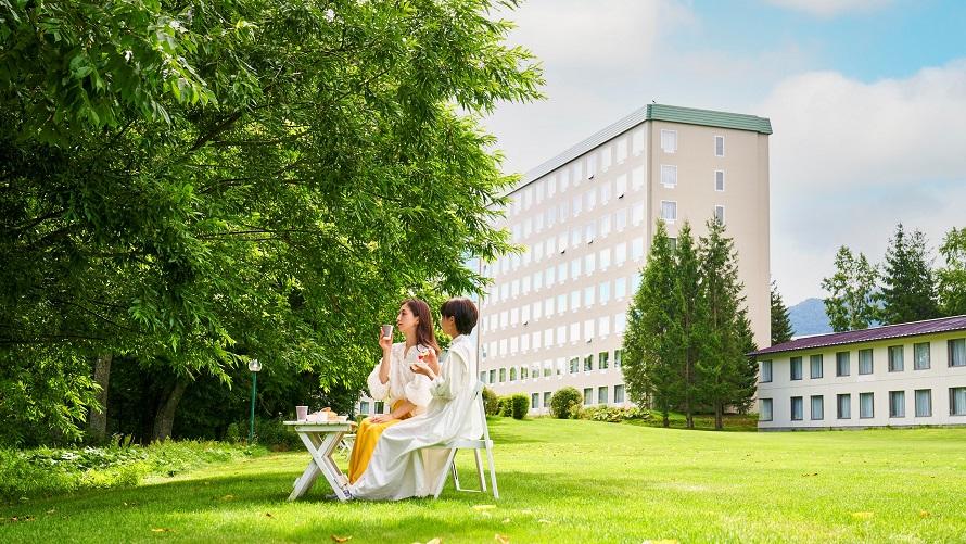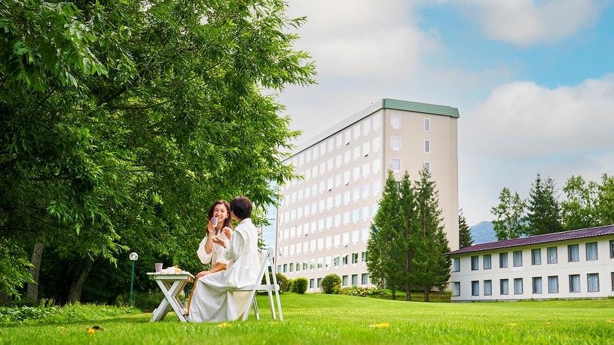 ホテル敷地内のレイクサイドガーデンの