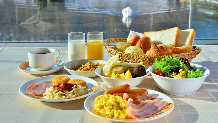 野鳥のさえずりで目覚める朝。爽やかな朝日に包まれ湖畔を散策したあとに食べる朝食は至福のひととき。