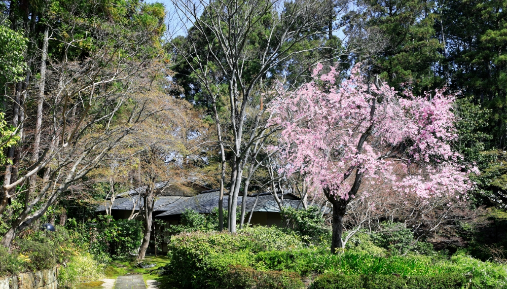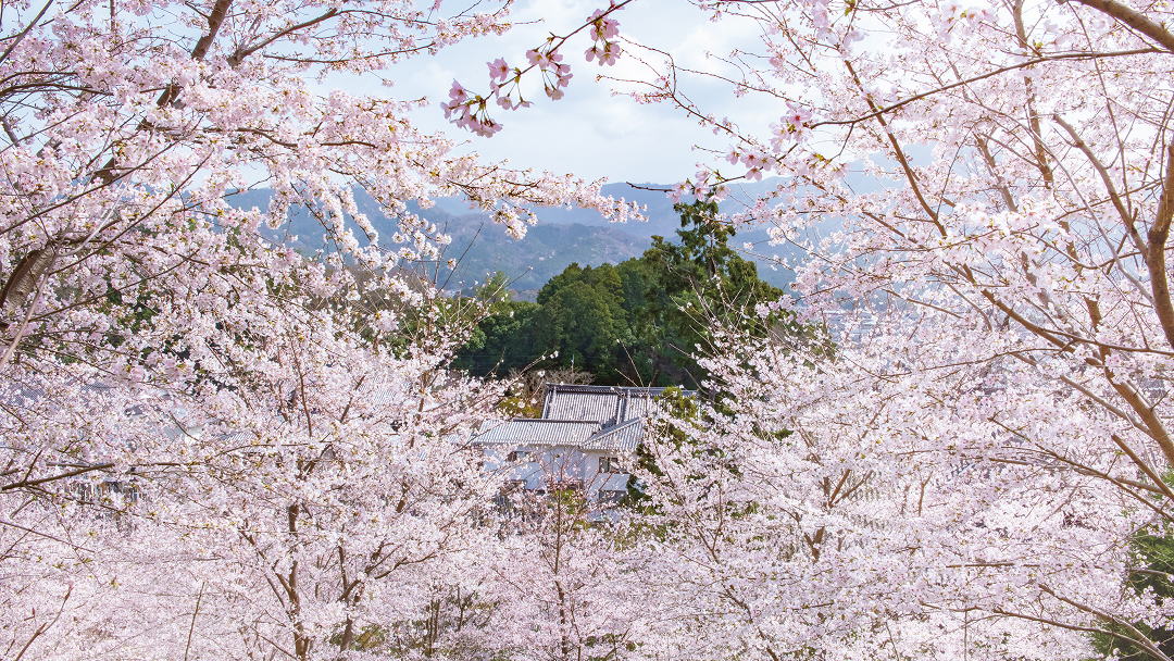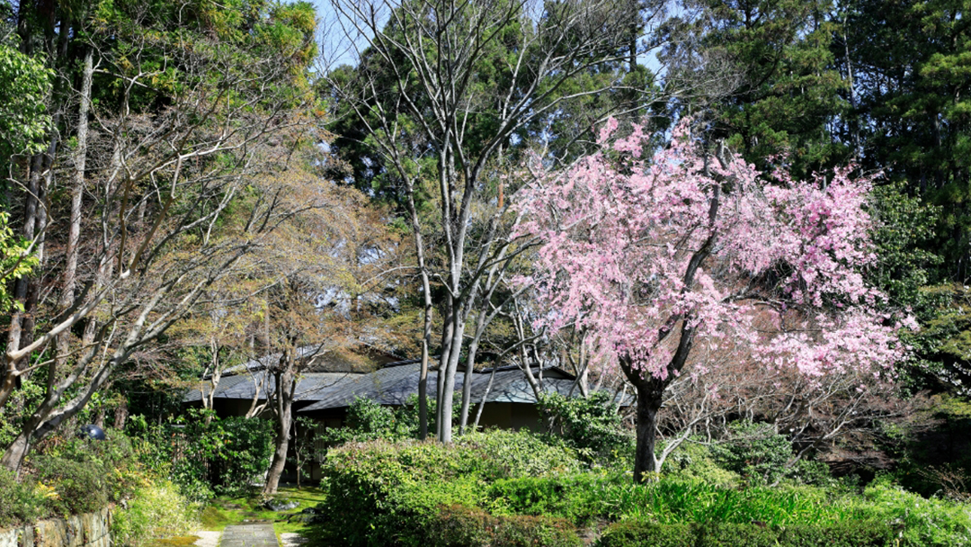 一般非公開の“妙満寺の森 サクラ山”。見上げる桜、見下ろす桜と比叡山の景色。宿泊者だけの特別な春体験として、静かに桜を愛でる絶景スポットをご案内します。