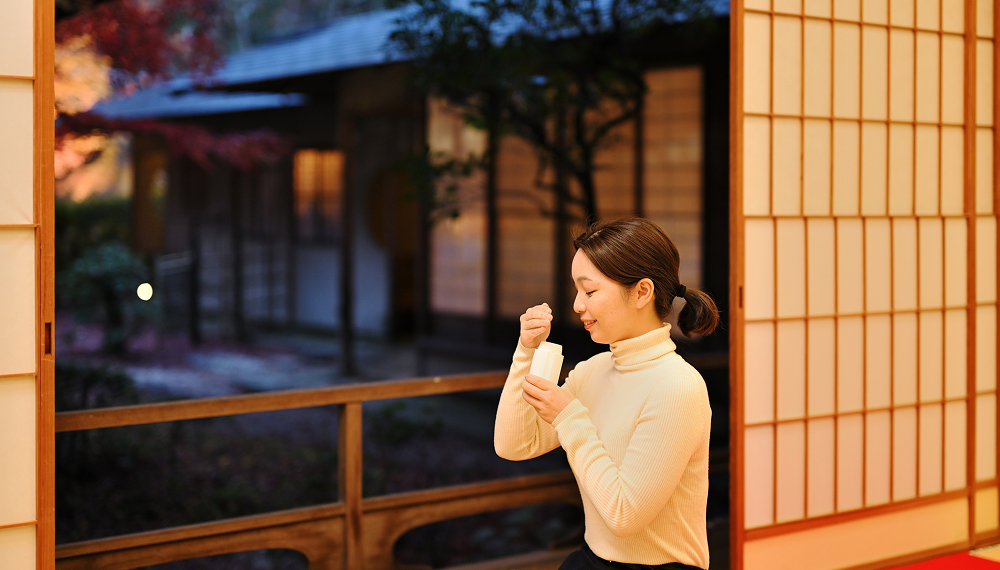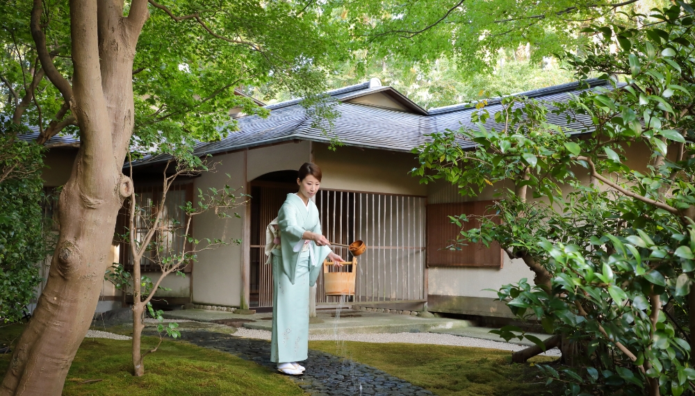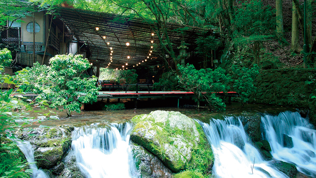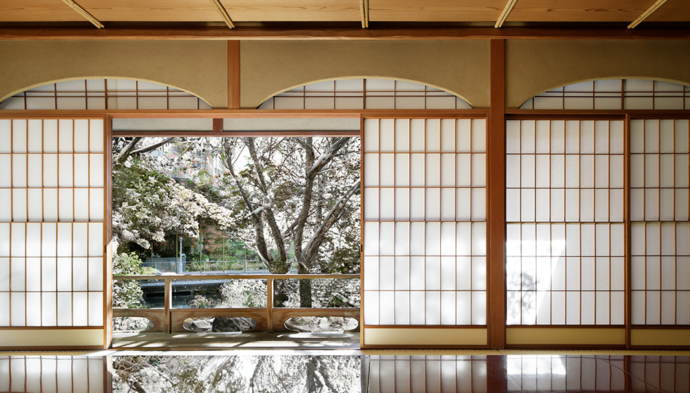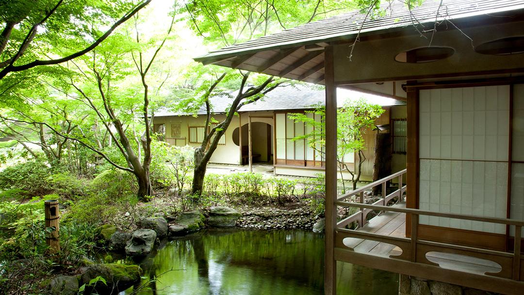 数寄屋造りの名人が遺した茶寮は、至る所に繊細さを感じられる茶室として、心休まるひと時を提供。日本庭園から聞こえる瀧の音、障子に映り込む、水の流れる様子も風情あるお座敷です。