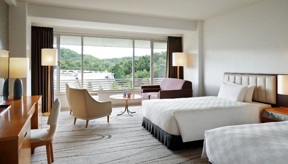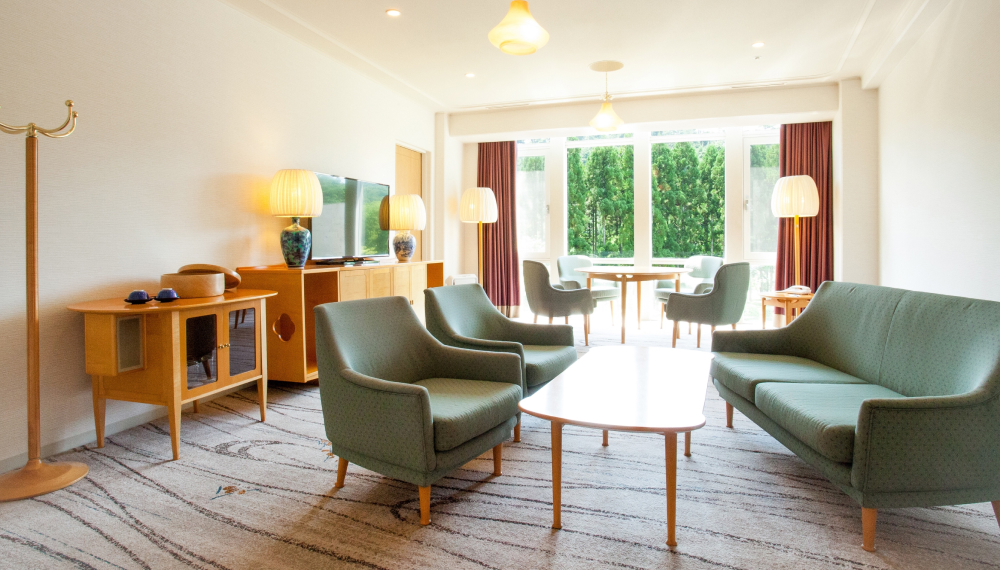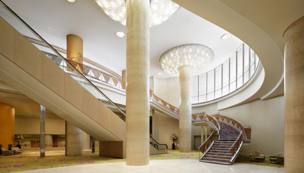 日本建築界の偉才と称された村野藤吾氏は、多大なる功績を残しました。特に彼の建築する階段には定評があり、ザ・プリンス 京都宝ヶ池ロビーの1階〜地下2階までの吹き抜けは、芸術そのもの。晩年の作品として、今もなお輝き続ける建築美は、ホテル内のそこかしこに。感動的な意匠をコンシェルジュが丁寧にご案内するホテルツアーも開催しています(不定期)。