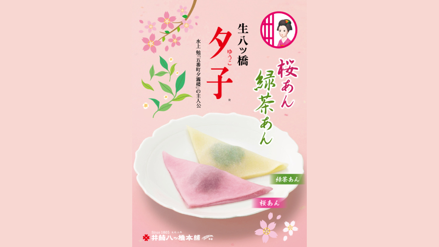 桜色の生八ッ橋に桜庭を合わせ、こしあんを包んだ「桜あん」と細かく挽いた茶葉と白あんを合わせた「緑茶あん」を詰め合わせ、明るい春の到来を表現いたしました。京の観光みやげとして、また、手軽な贈りものとしてぜひおすすめです。