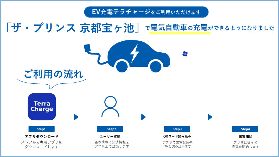 ザ・プリンス 京都宝ヶ池では、電気自動車(EV)充電器「テラチャージ」をご利用いただけます。