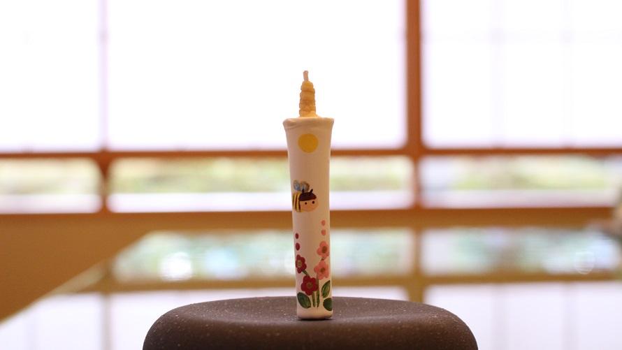 「和蝋燭絵付け体験」では、蝋燭に自分の好きな絵や文字を描いて、オリジナルの和蝋燭作りができます。和蝋燭の魅力の一つである紋様も、職人がしっかりと教えてくれるので気軽に参加できます。