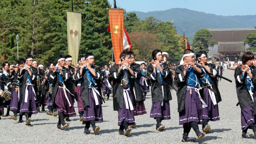 明治28(1895)年、第4回内国勧業博覧会が京都で開催されました。そして同年秋、平安遷都から1100年の紀念祭と式典が開催され、最終日に時代風俗行列が行われました。これが現在の時代祭となりました。
