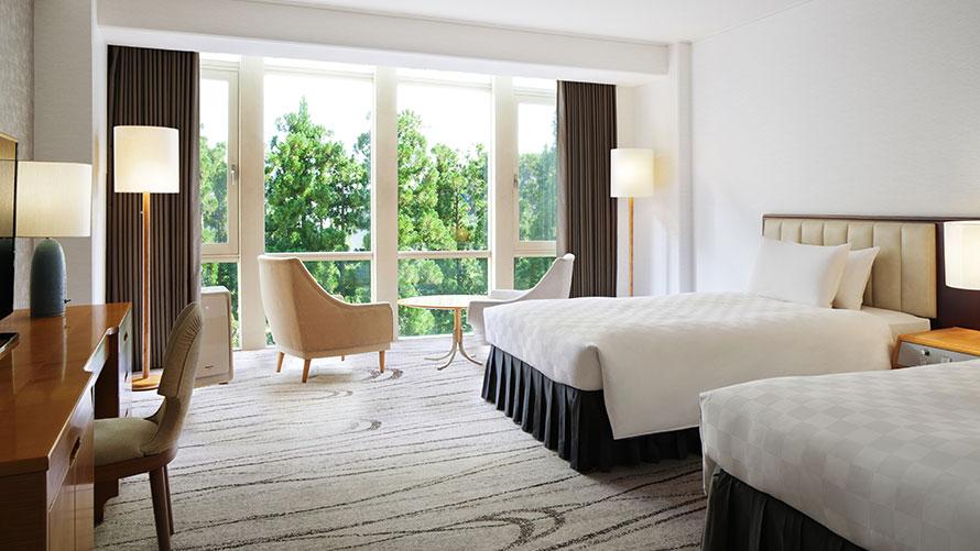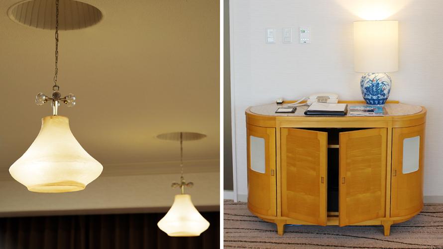 デラックスフロア、フォレストフロアのスイートルームは、村野藤吾の意匠を最も残す客室で、家具や照明などに外観同様の曲線を活かしたデザインが残されています。