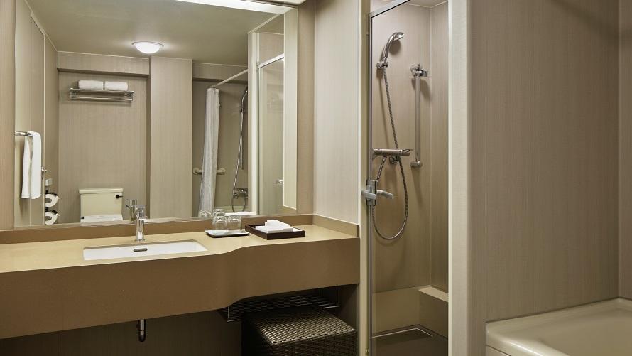 ツインルームには、バスルームにシャワーブースを備えた客室と、独立したパウダールームを備えた客室がございます。