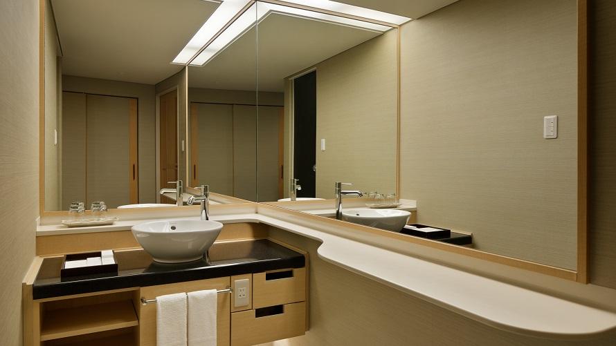 当ホテルで唯一のバスタブと洗い場が別れた浴室や二つのベーシンを備え、ご家族でのご宿泊に最適です。