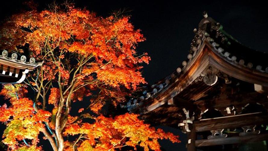 春には、大桜や枝垂れ桜が桜園一面に咲き広がります。また、期間中は夜間ライトアップも行われており、幽玄的な夜桜をお楽しみいただけます。秋には境内各所の紅葉や赤や黄色等、秋色に紅葉に染まった比叡山をお楽しみいただけます。