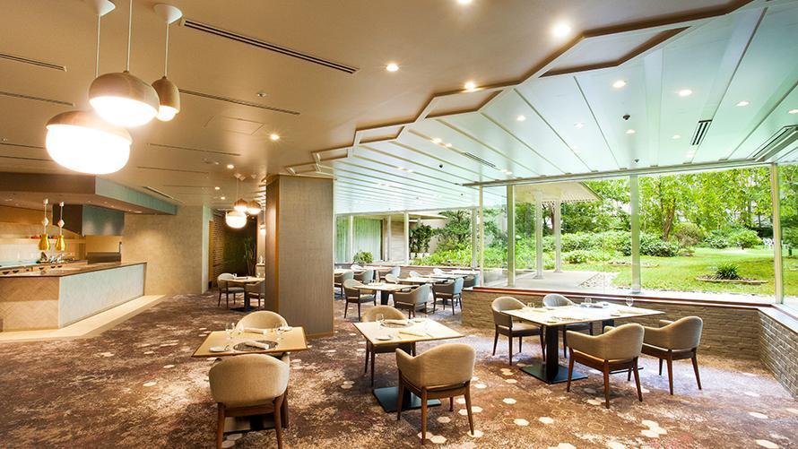 自然あふれる中庭を望むレストランでくつろぎのひとときを