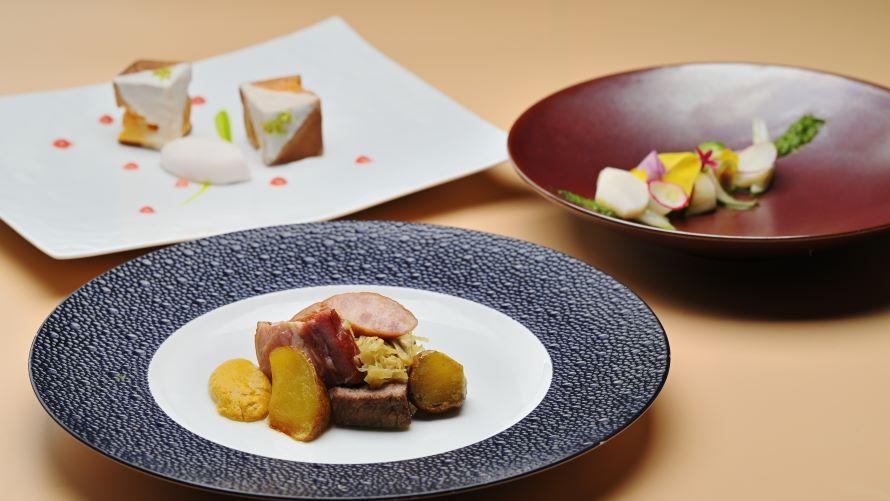 前菜からデザートまで、旬の食材を盛り込んだプリフィックス形式のランチコースです。その日の気分から好きなものを選んで楽しめるフランス料理コースランチは、いつ訪れても毎回違った発見や楽しさのあるランチタイムをお過ごしいただけます。