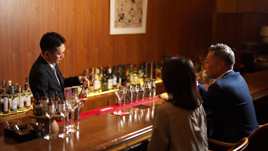 落ち着いた英国調インテリアのバーで銘酒を心ゆくまでお楽しみください。