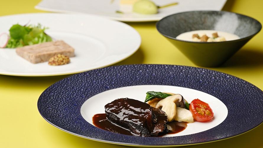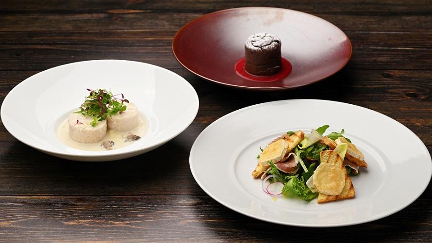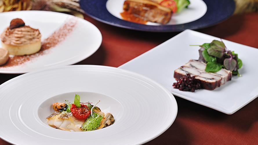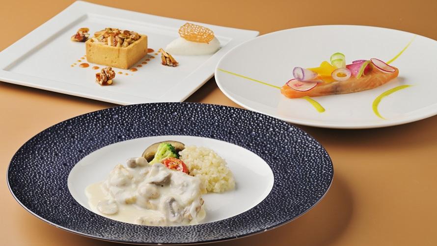 前菜からデザートまで、旬の食材を盛り込んだプリフィックス形式のランチコースです。その日の気分から好きなものを選んで楽しめるフランス料理コースランチは、いつ訪れても毎回違った発見や楽しさのあるランチタイムをお過ごしいただけます。