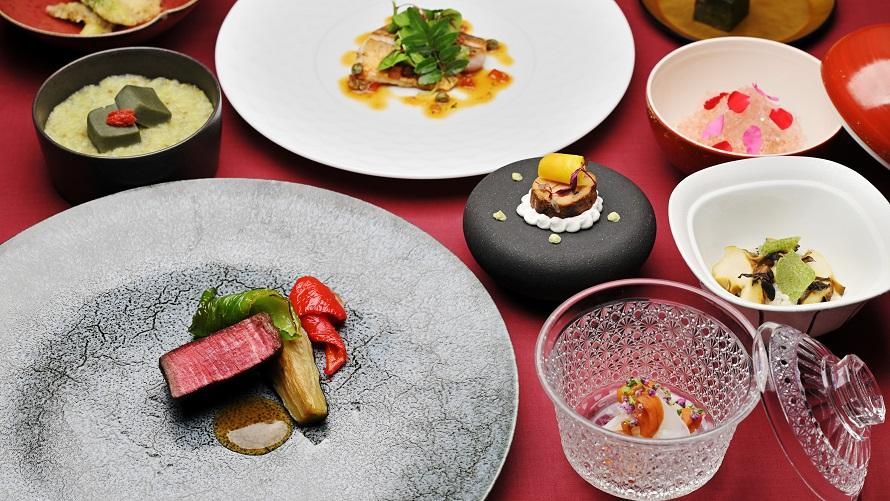 五味五色と言われる日本料理の味と、繊細で美しい彩りで盛りつけた西洋料理とのお皿の上のアートコラボレーション。