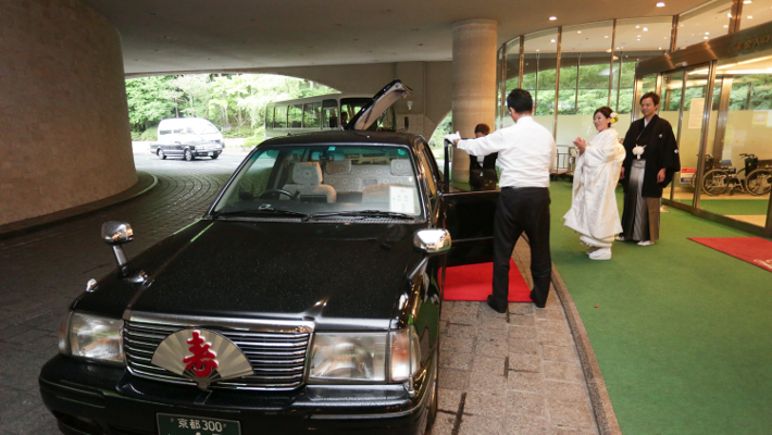 新郎新婦同じお車でホテルへ
