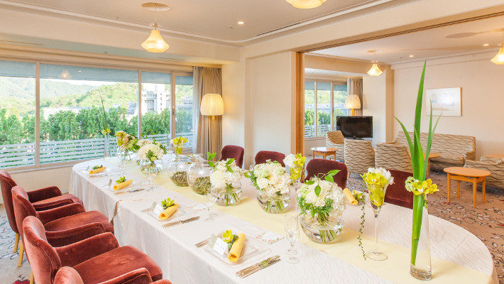 ホテル敷地内、日本庭園に建つ数奇屋造りの茶寮。ゆったりとした空間で四季とともに、親しいお仲間との楽しいひとときをお過ごしください。