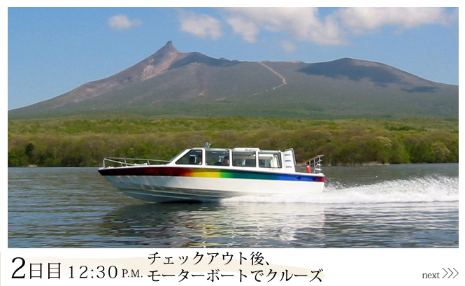 大沼公園を代表するアクティビティ、湖上を巡る遊覧船は約20分ほどで大沼・小沼湖からの景色をゆっくりと楽しめます。