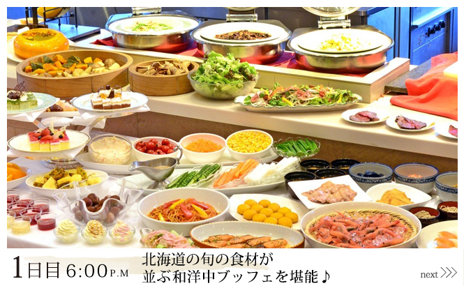 • 1日目6:00P.M. 北海道の旬の食材が並ぶバイキングを堪能