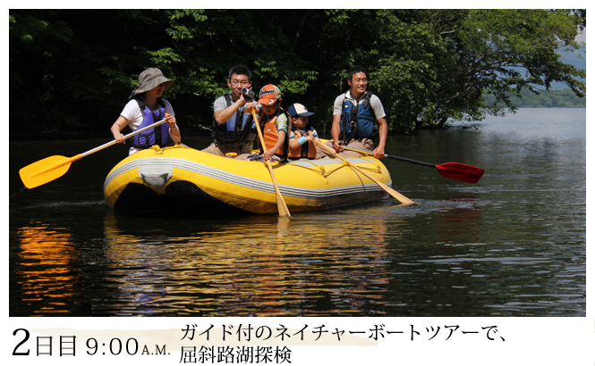 • 2日目9:00A.M. ガイド付のネイチャーボートツアーで屈斜路湖探検