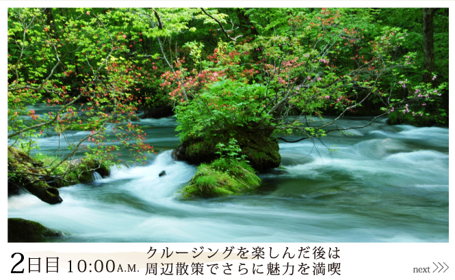 焼山から十和田湖へと続く約14kmの奥入瀬渓流。国の特別名勝に指定されており、美しい渓流沿いに数々の滝が点在する風景は実に神秘的。車道と歩道も整備されているので、気軽に散策できます。