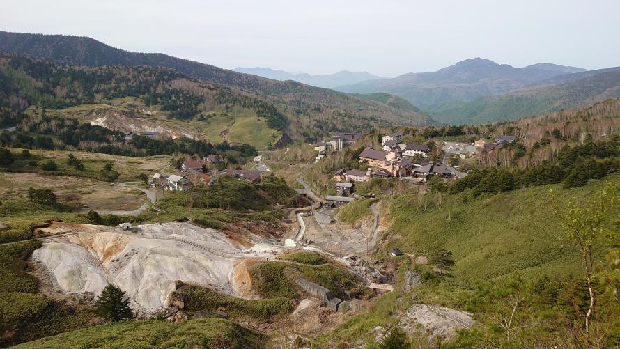 上りは少々ハードですが、山頂からは万座温泉を一望する絶景が広がります。日本国道最高地点