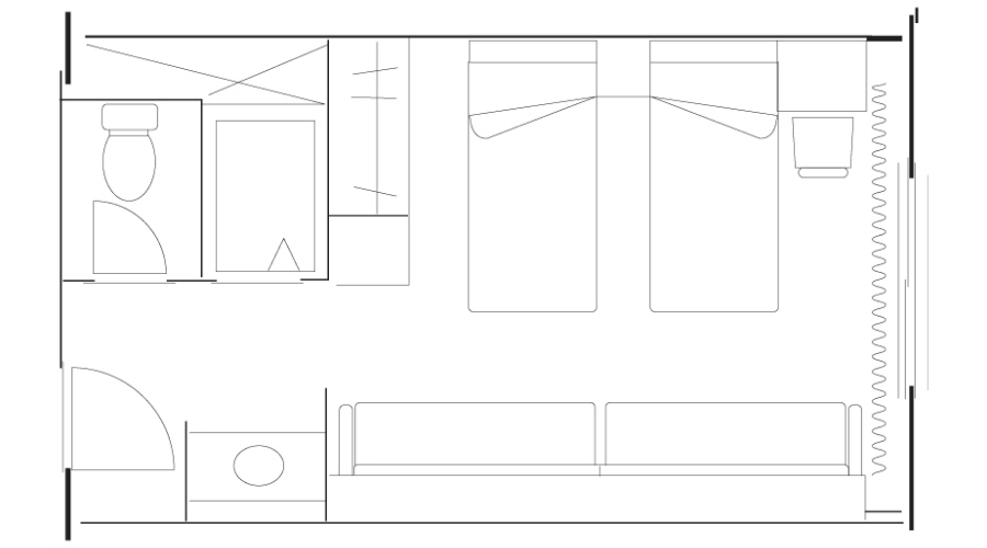| ベッドサイズ | メイン幅97cmx長さ195cm 2台、ソファベッド:幅97cmx195cm 2台 |