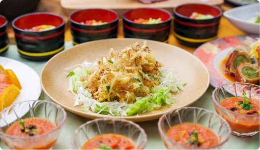 「煮る」「焼く」「蒸す」等さまざまな調理法でアレンジしたメニューをご用意いたします。