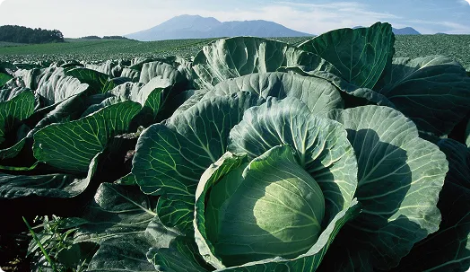 昼夜の寒暖差と澄み切った空気に育まれたキャベツ419は、ぎゅっと詰まった甘み、やわらかな食感、