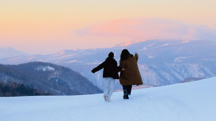 絶景の余韻に包まれながら、お帰りは二人だけのゲレンデを爽快に滑走!