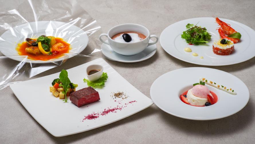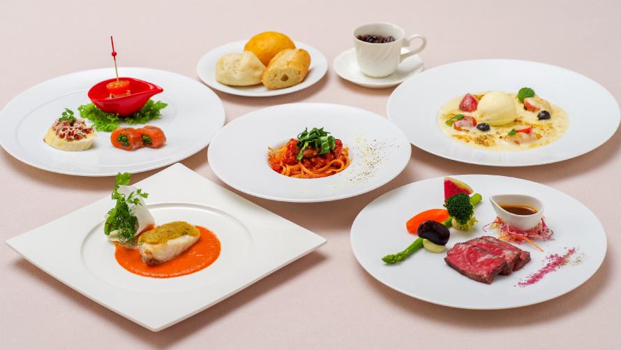 地元食材を取り入れ、盛り付けにもこだわった季節感あふれる料理長自慢のコースディナーをお楽しみください。