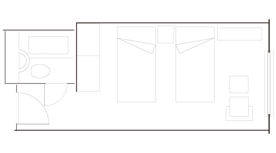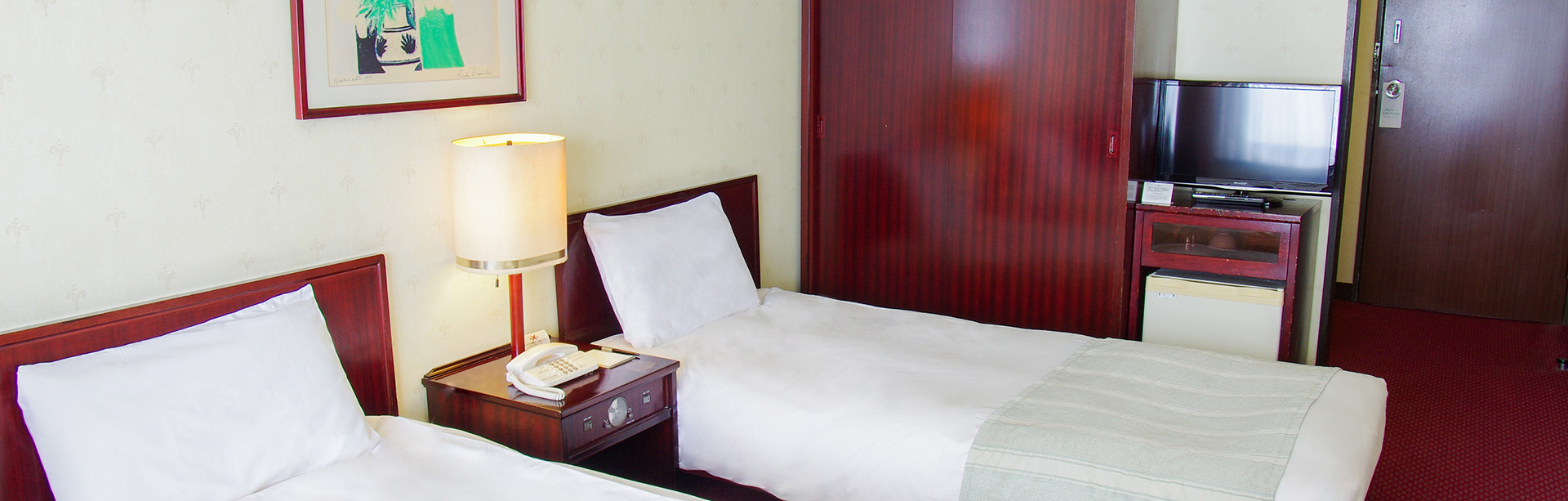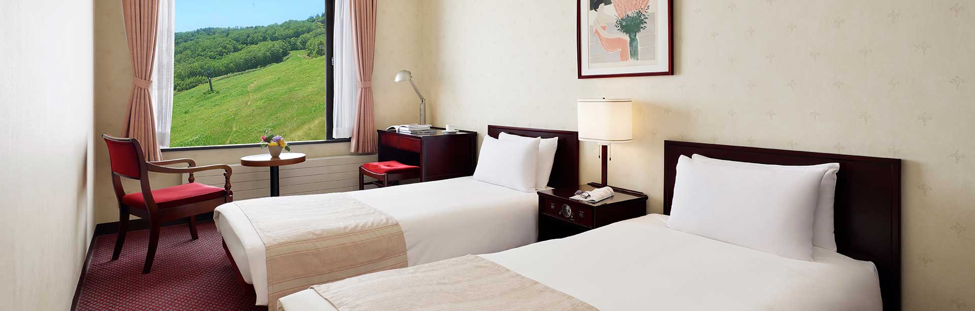 つかいやすくコンパクトにレイアウトされたツインルームC。冬期シーズンはゲレンデ側のツインとして人気です【Wi-Fi利用可能(無料)】