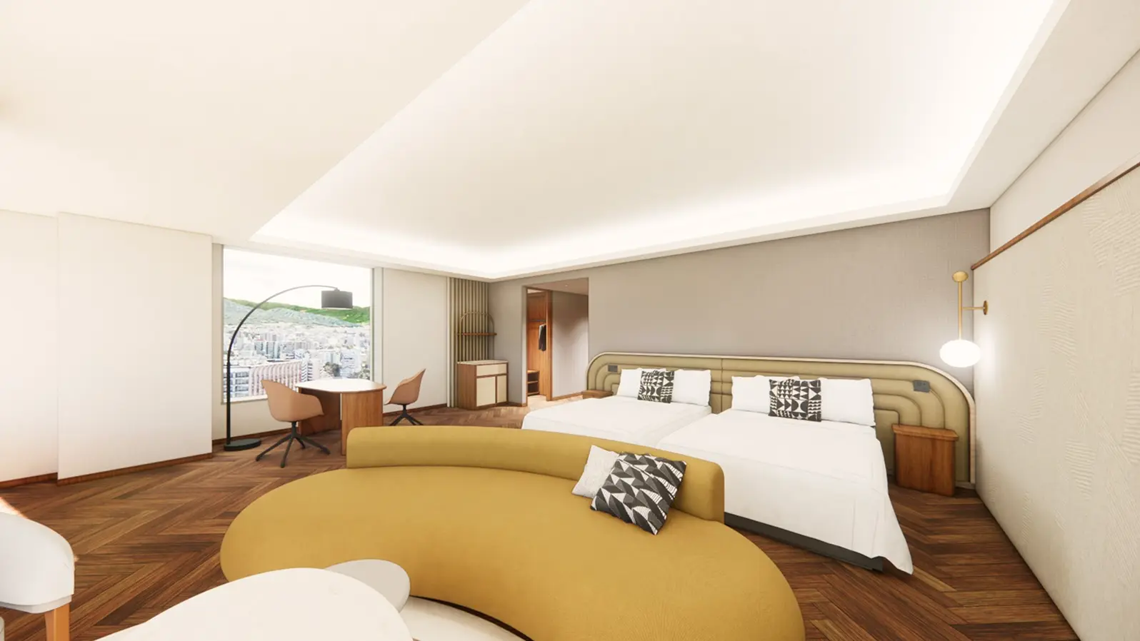Located in Fukuoka’s seaside area in the western part of the city, home to landmarks such as the Mizuho PayPay Dome Fukuoka, Fukuoka Tower, and the Fukuoka City Museum, the hotel offers convenient access—about 20 minutes by car from Fukuoka Airport and about 20 minutes by bus from Tenjin.
