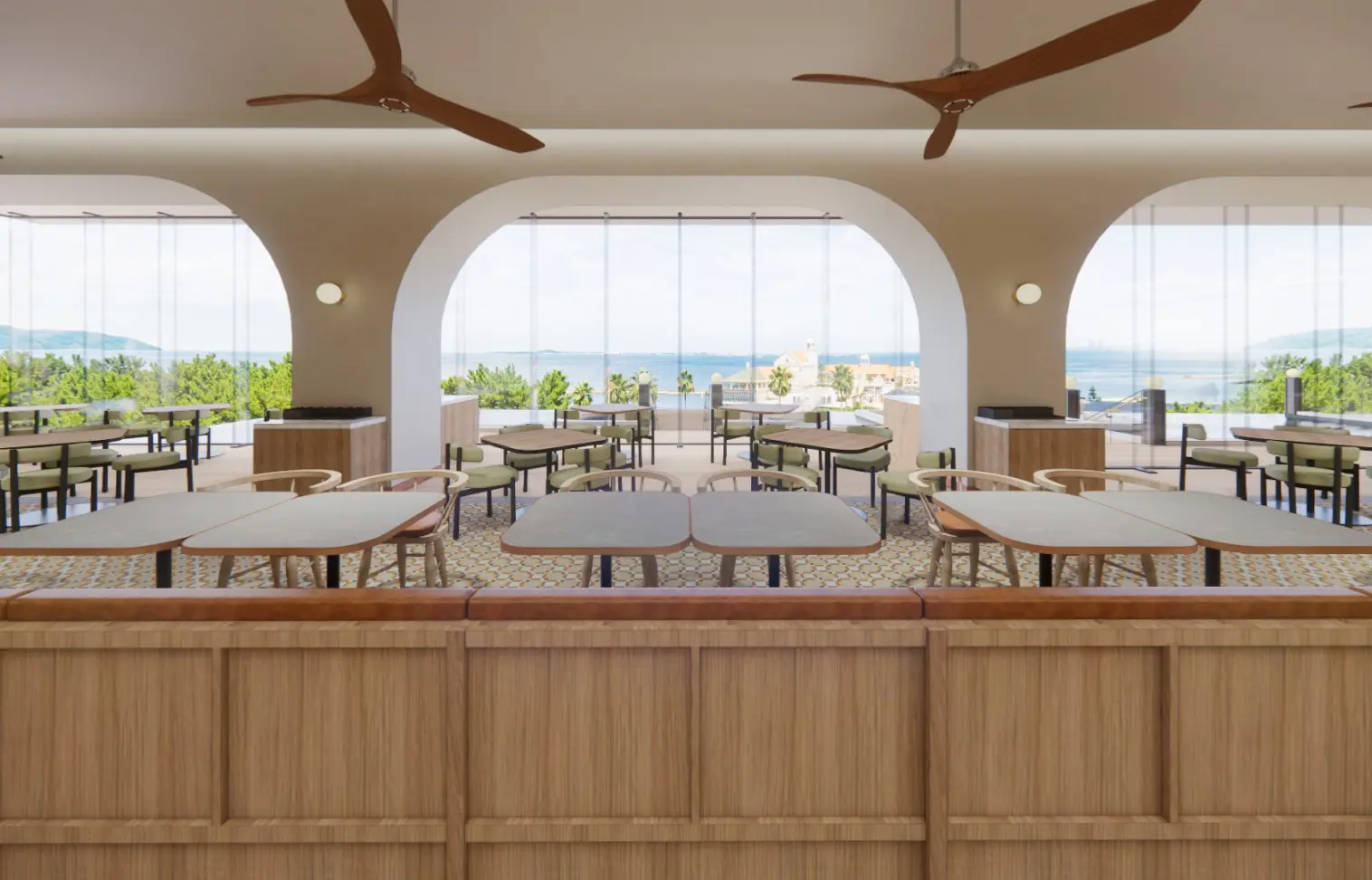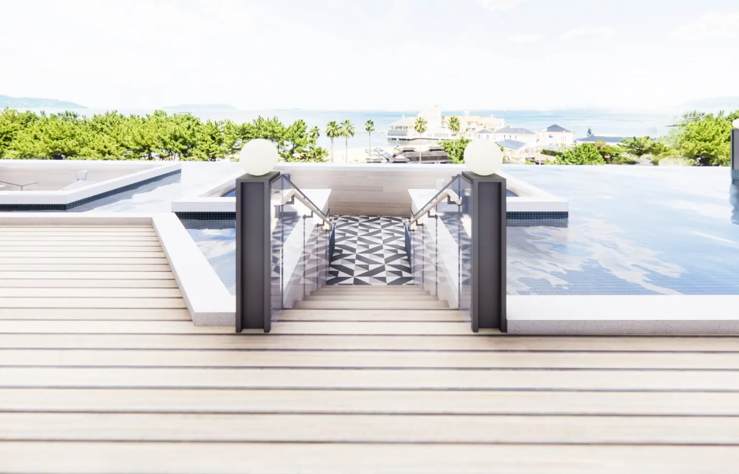 A restaurant where you can enjoy your meal while taking in the beautiful nature of Momochihama. The terrace features a reflecting pool, creating a soothing and relaxing atmosphere.