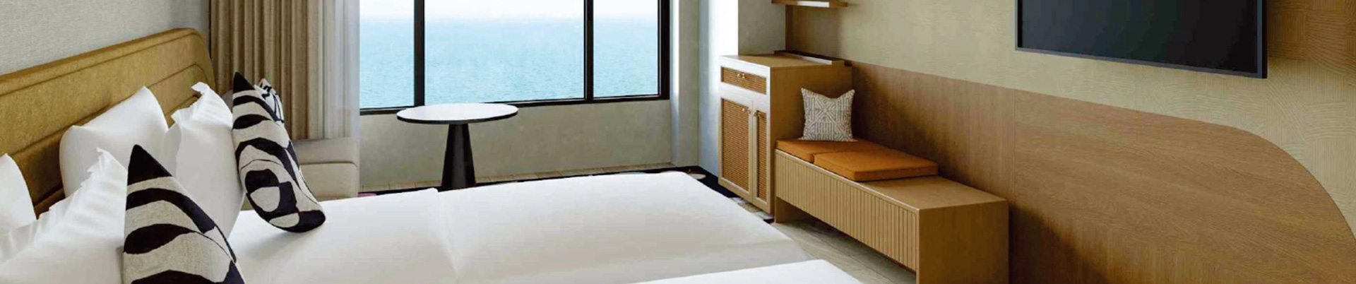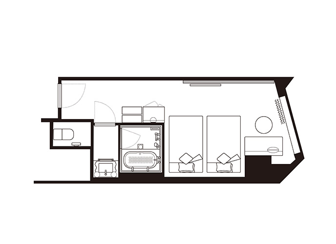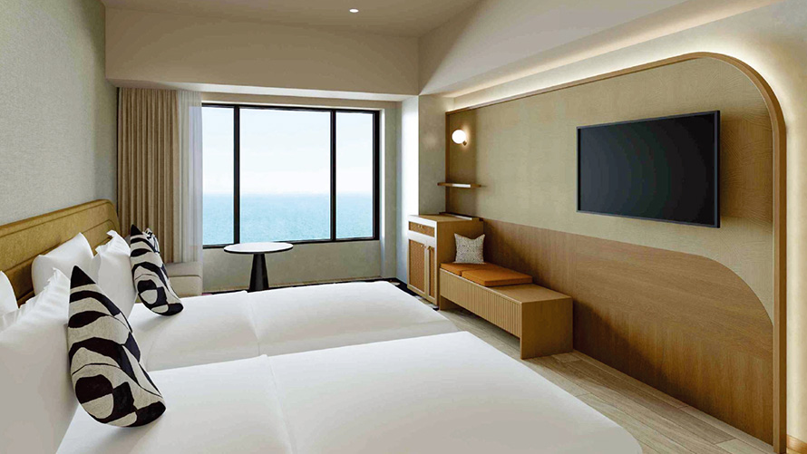 移りゆくももち浜の海と空の景色を存分にお楽しみいただける客室。独立したバスルームを備え、機能的で心地よい空間でお過ごしいただけます。