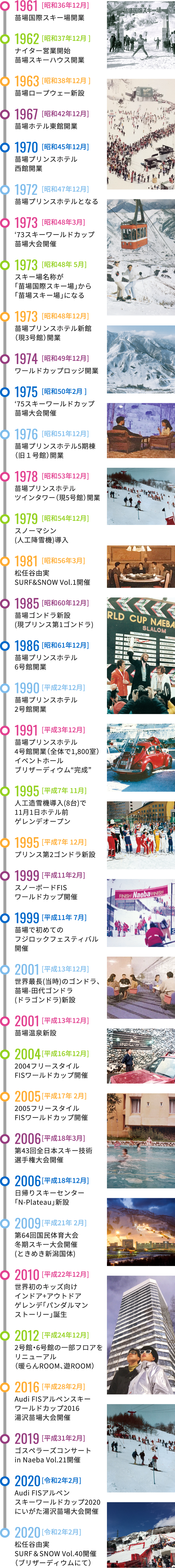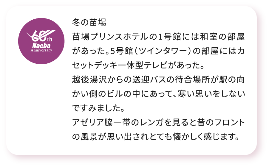 1961年12月のオープンから現在まで、数多くのお客さまにご来場いただいた苗場スキー場、苗場プリンスホテル。