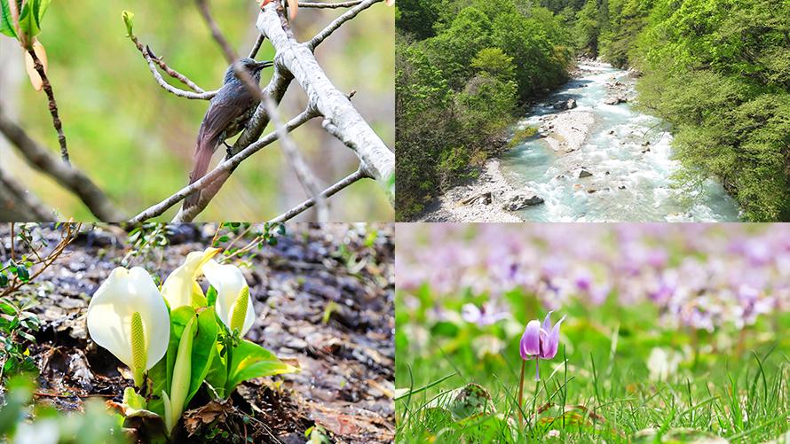 雪融けで水量が増した川のせせらぎを聞いたり、野鳥のさえずりなど、この時期ならではの自然を楽しめることも特徴です。