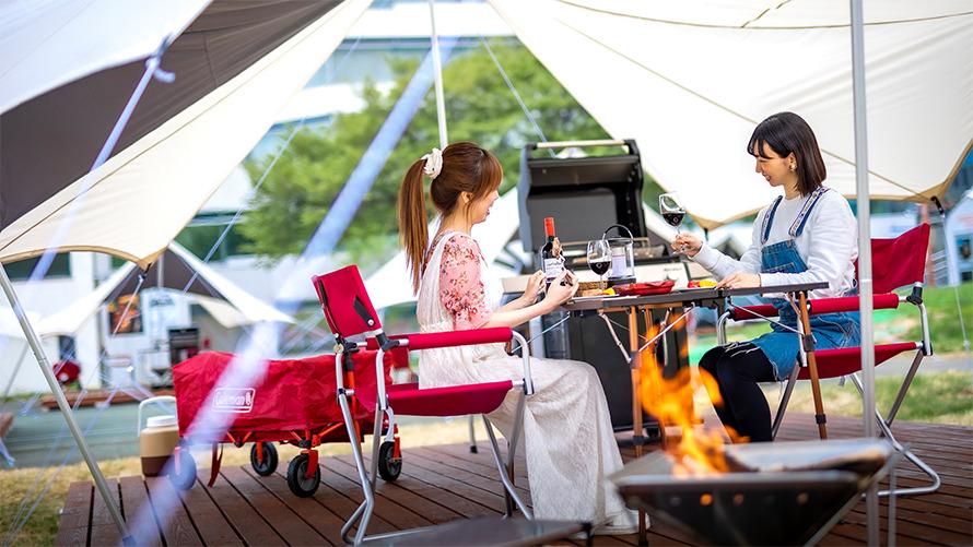 グリーンシーズンの苗場で、ゆったりとたき火体験。雨のなかでも安心して、たき火体験やバーベキューをお楽しみいただけます。