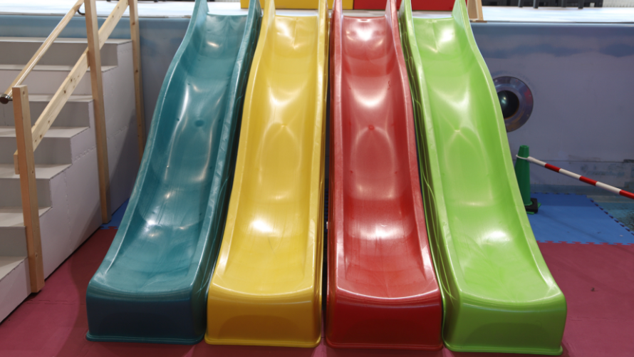 全長約100mのポップでカラフルなスライダー。こどもからおとなまで楽しめます。