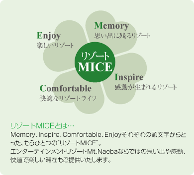 冬期シーズンをはじめ、四季を通して大自然を満喫できる苗場は、コンファレンスの場としても最適な環境といえます。 春の芽吹きに癒やされる新緑の季節や、真夏の気温差が都会と比べて約7℃と涼しい夏の季節。 そして山々が錦色に染まる紅葉の季節と、一年を通じて大変過ごしやすい環境が特徴です。 宿泊を伴うMICEのご利用でもっとも大切なことは、多様なニーズにお応えする万全のホスピタリティ。 研修の規模や目的に合わせて、バリエーション豊かな会場からお選びいただくことができるのも、苗場プリンスホテルだからこそ。 滞在中のお食事も、カロリー計算やご要望にそった豊富なメニューでおもてなしいたします。 コンファレンスの合間にはスポーツで汗を流し、温泉でリフレッシュ。都会の喧噪から離れた苗場プリンスホテルならではの施設と サービスで、お客さまをサポートして参ります。大自然が、開放感と集中力を生み出す“苗場リゾートMICE”をご提案いたします。