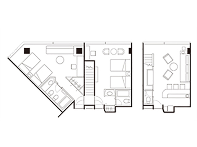 リビングとベッドルームを別々に備えたロイヤルスイートルームはすべてのお部屋がゲレンデビューとなっており、ベッドルームは2つ。ソファベッドも備え、最大6名さままでご利用いただくことが可能です。ご家族やお仲間と特別な1日をお過ごしください。