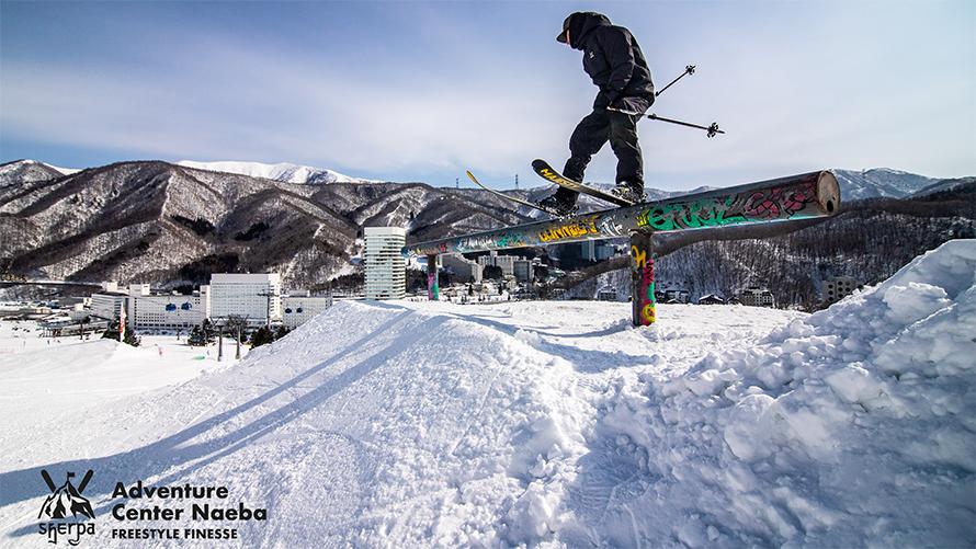 苗場スキー場内のパークや地形を利用して、フリースタイルやフリーライドの技を磨こう!
