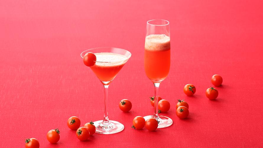 トマトの収穫量・出荷量で全国第3位を誇る愛知県。県産のトマトを使用したカクテル・ノンアルコールカクテルとバーメニューとしてフード3種をご用意いたしました。グラスの中で鮮やかな赤がきらめくトマトドリンク2種と素材の持ち味を生かしたパイ、カプレーゼ、アヒージョ。