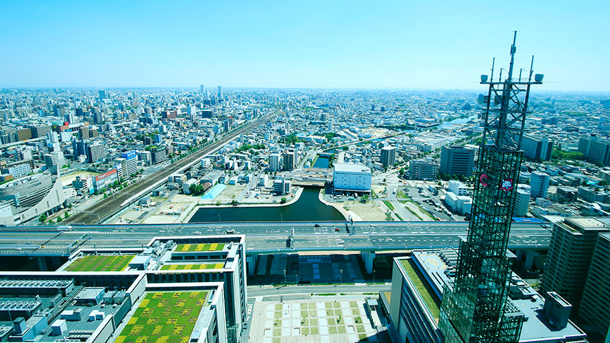 ホテルのデザインコンセプト「空の浮きふね」の由来となった中川運河の眺望をお楽しみいただけます。