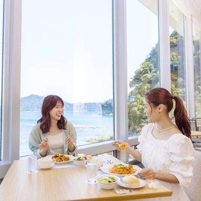 おだやかな渚を前にゆったりとした非日常的な時間を