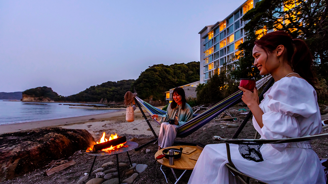 海辺で焚火を楽しむ優雅な時間を過ごしてみませんか。ハンモックに揺られながら星空を眺める、焚火+Beach「焚きBeach」をご用意しています。焚火でコーヒーを楽しむ、1日1組限定の特別な非日常体験をお楽しみください。
