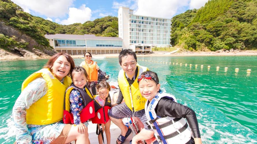 プールサイドで受付を済ませたら、ホテル前ビーチの桟橋から宿泊者限定ボートでノースビーチへGO!