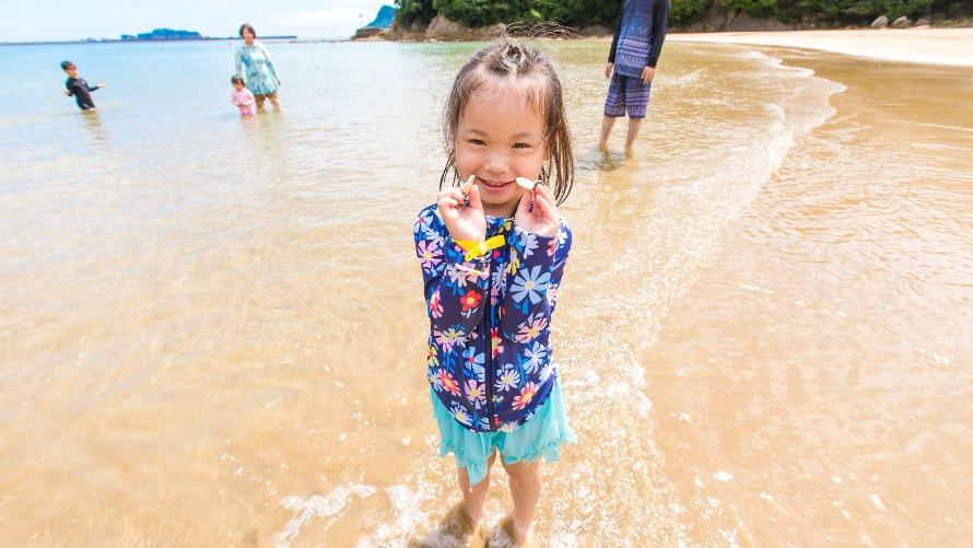 透明度抜群の遠浅なので、小さなお子さまも安心して遊べます。ヤドカリやカニなどの生き物学習にも♪