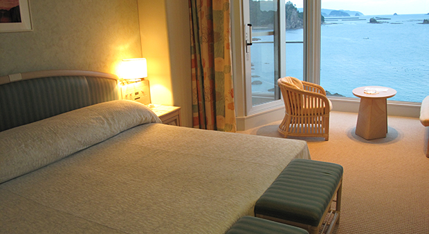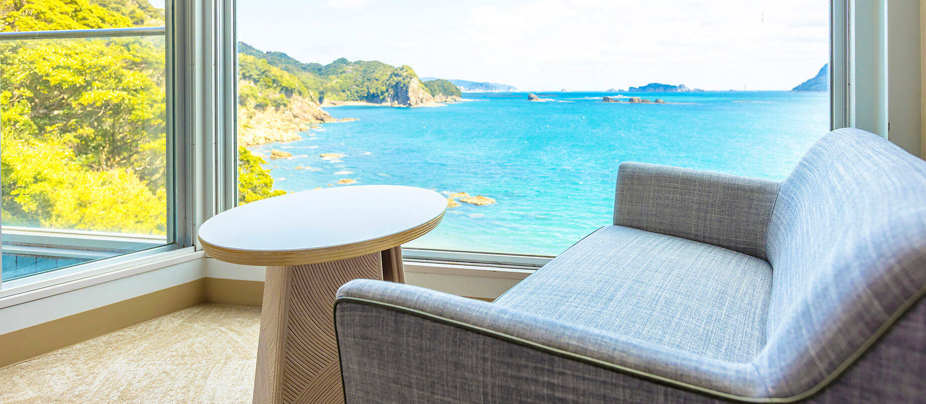 各フロア1部屋のみ、全7室の客室は、すべてオーシャンフロントです。シャワー室を完備し、広々としたベッドで快適にご滞在いただけます。