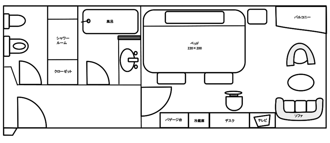 | ベッドサイズ | 幅220cmx長さ200cm1台 |